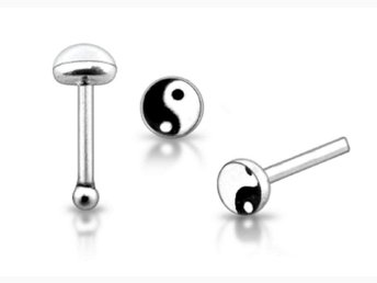 REA___1 st. Näspiercing i silver med med emaljerad Yin Yang (r)