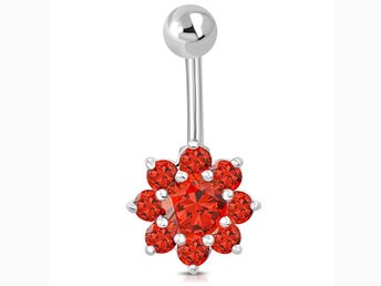 Navelpiercing Piercing i Stål 316L i Silver Färg - Blomma med Orange Kristaller