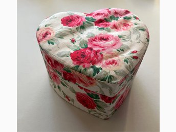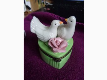 Jättesöt Smyckeskrin eller presentask för ring med duvor och ros. Av porslin