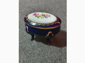 J.v. Jenaer Glasl Echt Kobalt Smyckeskrin VINTAGE 1950-TAL