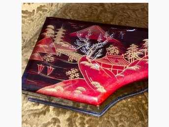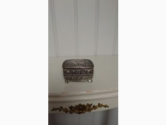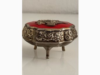 Silverfärgat Skrin/Smyckeskrin med rött tyg inuti Vintage