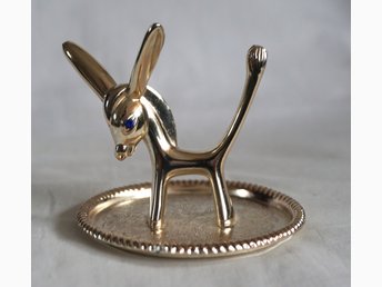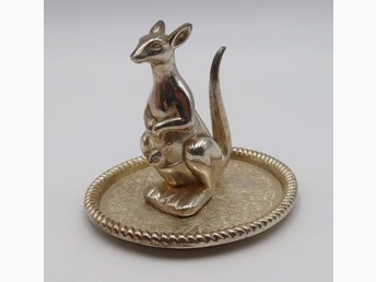 Retro vintage hållare för smycken ringar känguru med unge joey från guldsmeden