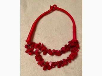 HALSSMYCKE, FINT HANTVERK i VARM RÖD FÄRG.