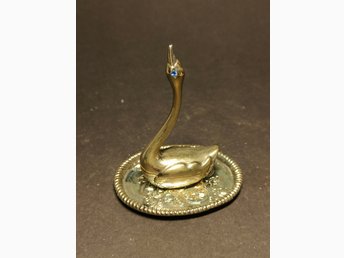 Söt vintage kattprydnad med ringhållare, silverpläterad