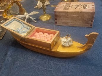 Smyckeskrin i form av en gondol med ballerina äldre vintage