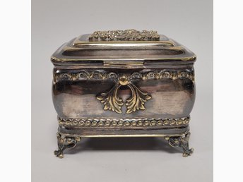 Äldre smyckeskrin - Skrin - Nysilver - Fraget N Plaque - Vintage