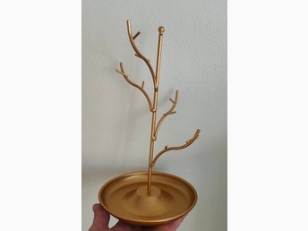 Smyckeshållare Smyckesträd i guldfärgad metall med koppbas.
