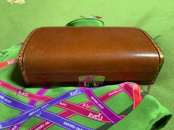 Antikt, vintage smyckeskrin i skinn/mocka. Vackert hantverk med fina detaljer!