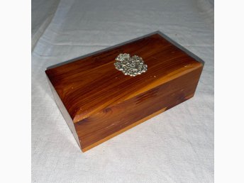 SMYCKESKRIN ASK i cederträ från Seneca Indian Res Salamanca N Y ** vintage antik