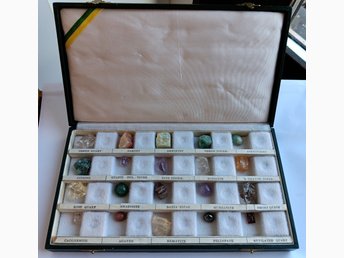 Etui med slipade och råa ädelstenar mm. Se bilder Ut 1:-