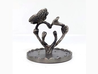 SMYCKESTRÄD RINGHÅLLARE med fjäril som pollinerar, vintage, tenn