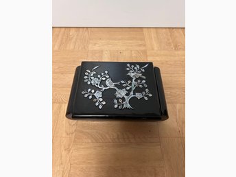 VINTAGE SMYCKESKRIFT I LACKAT TRÄ MED ASIATISK TEMA