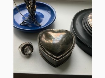 Vintage smyckeask i nysilver, hjärtformad. Fin dekor, present eller kanske fria!