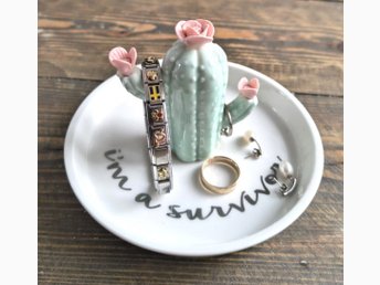 Blommande kaktus smyckeshållare, ring-/smyckesfat, i porslin.
