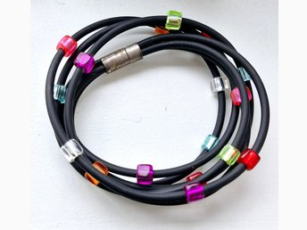 Stilig svart gummi hals/armband med färgade stenar