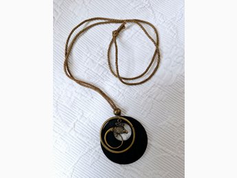 Stilig halsband med en svart cirkel och en fiskdekoration i metall