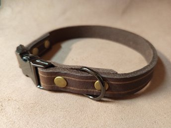 Brunt läder hundhalsband 19 - 4mm mjukt oljat läder / 38 cm enhandsförslutning