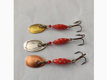 3 st 4 gr spinnare i 3 st olika färger på skeden.