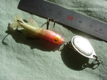 1 st spinnare med kummifisk 5.8g 90mm. Fin med vassa krokar. Ej provat. Abborre.