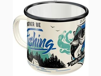 Fiska, Campa, Tälta, Lägereld, - Emalj Mugg - Kaffe/Te/Choklad/O´boy