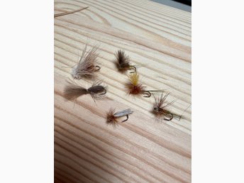 6 st handbundna torrflugor (Ahrex och Tiemco krokar)