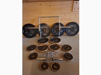 Komplett träningspaket med skivstång "trap bar" med olympiska vikter och hantel