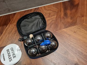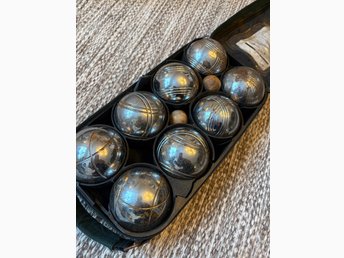 Vintage Petanque klot boules set 8 st stålkulor originalväska träknotor retro