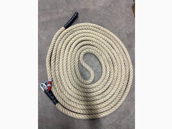 Kraftigt rep 15 m – ca 4 cm tjockt – med schackel