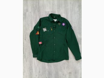 Scouting Scouterna Spejder Danmark grön skjorta Storlek S-M, med scoutmärken