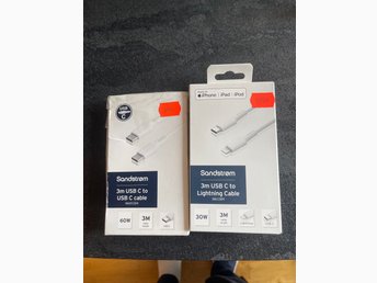 Oanvända Sandstrøm 3m USB C till Lightning-kabel och 3m USB C till USB C-kabel