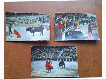 3 st. vykort med tjurfäktningsmotiv från Portugal