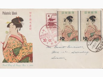 FDC Philatetelic Week Japan Stpl 1/11 - 1955 Flicka spela glasflöjt