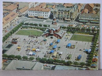 Lidköping. Flygvy över torgområdet. 1960-talsvykort.