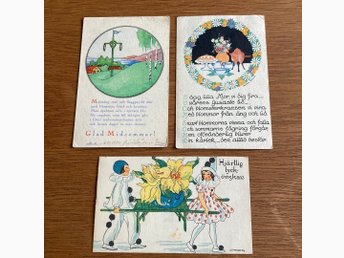 Gamla gratulationskort och presentkort, 1920-40-tal samlarobjekt, kuriosa.