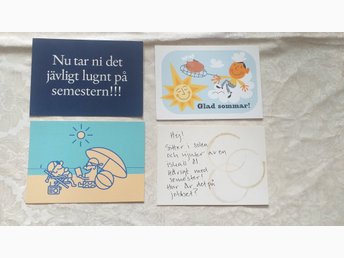4 äldre Vykort - Semestermotiv semesterhälsningar oskrivna retro