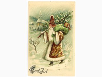 Äldre vackert Julkort Tomte God Jul i relief tryck