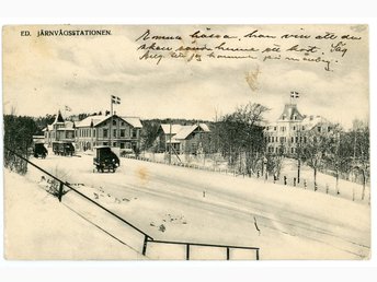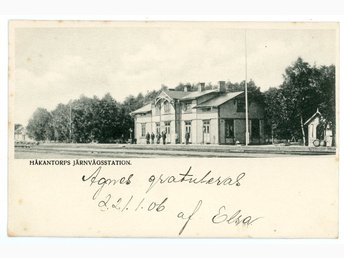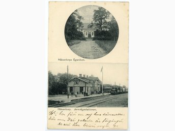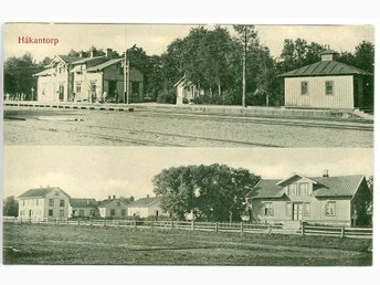 Äldre vykort 2-vyer Håkantorp Järnvägsstation m.m