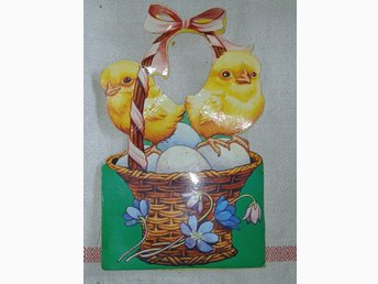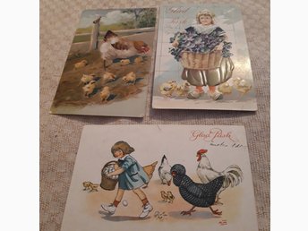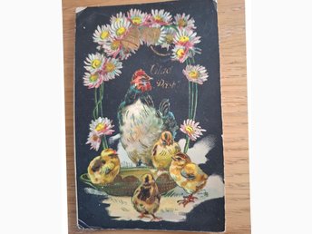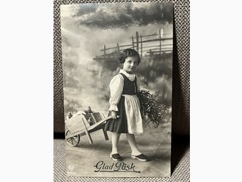Glad Påsk 1922. Flicka och vagn med kycklingar. Stämplat Dalum.