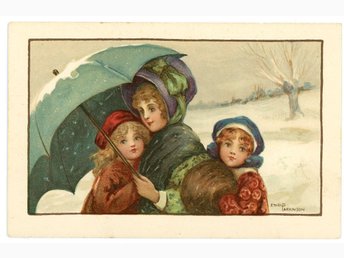 Äldre signerat Ethel Parkinson vykort Vintermotiv med barn,