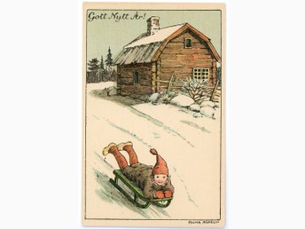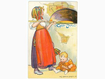 Äldre vykort God Jul signerat Maj Lindman Janson 1915