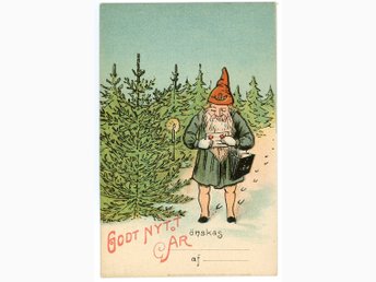 Äldre Signerat T.N vykort "God Jul" Tomte med brev