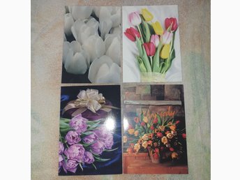 Vykort, 10 St, Oskrivna - Röda Blommor