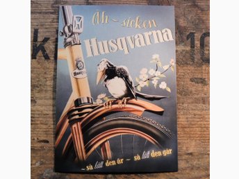 "HUSQVARNA" nostalgi vykort, format A5, cykel reklam motiv 1940talet