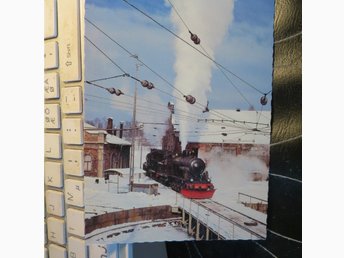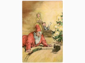 Vykort signerat Robert Högfeldt , Tomte Pappa med tåg och barn