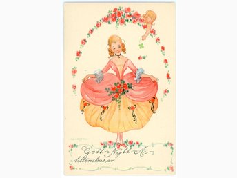 Äldre signerat Vykort Gott Nytt År Signe Aspelin