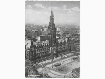 Äldre vykort med Rådhuset i Hamburg, postgånget 1959, saknar frimärke.