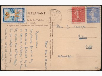 Frankrig Yvon Postkort. Tuberculose 1929 Mærkat. Paris XVI 192 . t. Oslo Norge