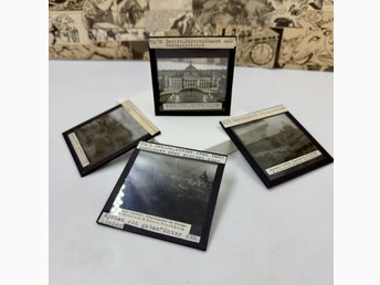 4 st antika glasbilder / ljusbilder Berlin ca 1900: Riksdagshuset, slott m.m.
