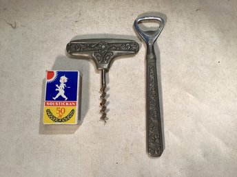 Vintage Tenn Korkskruv och Flasköppnare - Pewter Norway lantligt retro