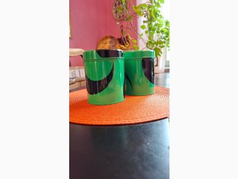Plåtburkar, godisburk, påskburk, förvaringsburk, gröna burkar, Aarikko, Finlan